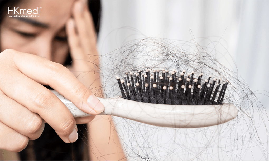 Rụng tóc là một trong những vấn đề da liễu phổ biến nhất khiến nhiều khách hàng lo lắng khi tìm đến sự tư vấn của đội ngũ bác sĩ HKmedi. Chúng tôi hiểu rằng mái tóc không chỉ là một phần của vẻ ngoài mà còn phản ánh sức khỏe tổng quan của cơ thể. Rụng tóc có thể xuất phát từ nhiều nguyên nhân như di truyền, căng thẳng, thay đổi nội tiết tố hoặc do bệnh lý tiềm ẩn. Tuy nhiên, một trong những nguyên nhân quan trọng và thường bị bỏ qua chính là chế độ dinh dưỡng. Vậy: “Thiếu chất gì gây rụng tóc?”. Bài viết này sẽ giải đáp thắc mắc này và đưa ra những giải pháp hỗ trợ bạn trên hành trình tìm lại mái tóc dày khỏe.