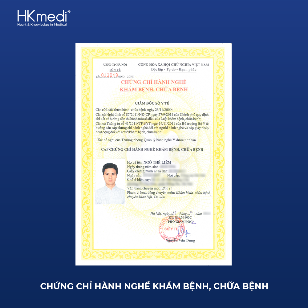 Là cố vấn chuyên môn của hệ thống phòng khám HKmedi, Thạc sĩ – Bác sĩ Ngô Thế Liêm sở hữu nền tảng chuyên môn vững chắc về các bệnh lý da liễu và rụng tóc – hói đầu, bác sĩ không ngừng cập nhật những công nghệ và phương pháp tiên tiến nhất trong y sinh học tái tạo từ đó đem lại những giải pháp điều trị “An toàn – Khoa học – Cá nhân hóa” mang đến hiệu quả bền vững cho khách hàng