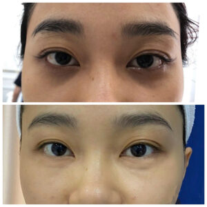 Khách hàng Minh Hà trước và sau liệu trình điều trị thâm mắt