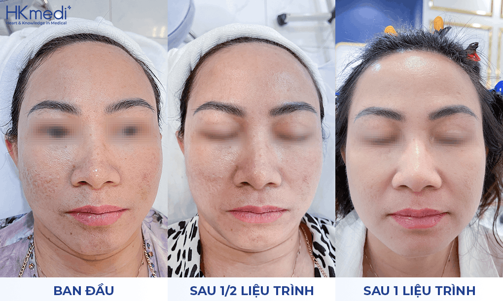 Chị được bác sĩ chuyên khoa tại HKmedi thiết kế phác đồ trị sẹo cá nhân hóa dựa trên chỉ số xét nghiệm “Tầm soát bệnh lý da tổng quát” MIỄN PHÍ giúp Bác sĩ xác định đúng nguyên nhân, điều trị từ gốc rễ bằng đầu máy đa công nghệ, tinh chất đặc trị giúp phục hồi làn da và loại bỏ mô sẹo xơ cứng, kích thích tăng sinh collagen nội sinh, lấp đầy sẹo rỗ.