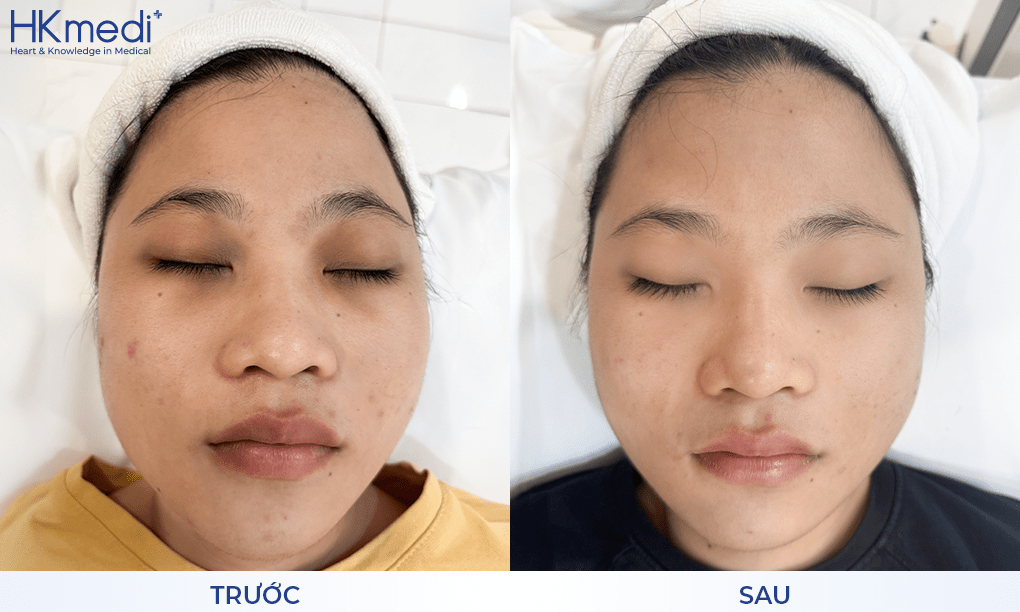 Quy trình điều trị nhẹ nhàng, không đau rát, không nghỉ dưỡng. Trực tiếp đội ngũ bác sĩ chuyên khoa da liễu trên 10 năm kinh nghiệm tại HKmedi thăm khám, đứng máy điều trị, theo sát xuyên suốt liệu trình, tư vấn chi tiết cách chăm sóc tại nhà, giúp duy trì hiệu quả lâu dài.