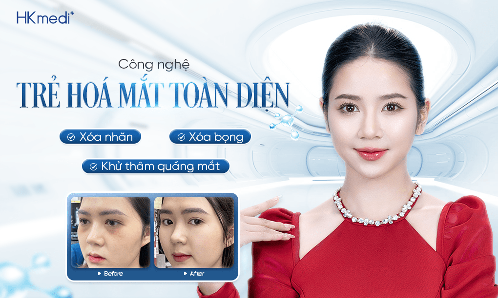 Công nghệ trẻ hóa mắt tại HKmedi được xem là công nghệ 3 trong 1, giúp cải thiện nếp nhăn ở vùng mắt, tình trạng da mắt chùng nhão, thiếu độ đàn hồi, bọng mắt và mỡ dư thừa tụ ở mí dưới, mờ quầng mắt