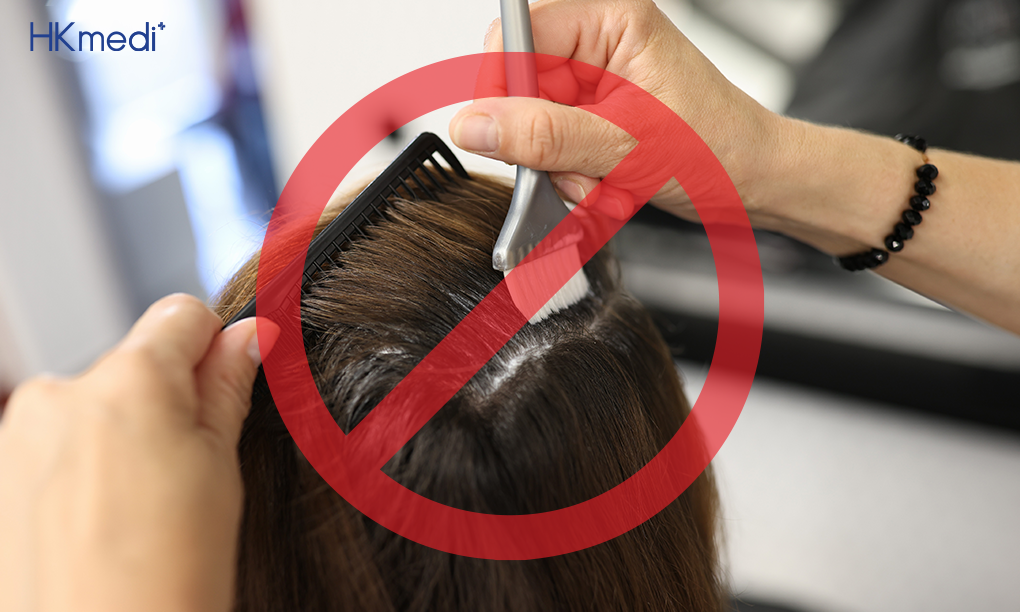 – Không nhuộm, uốn, ép tóc, tránh để da đầu tiếp xúc với hóa chất