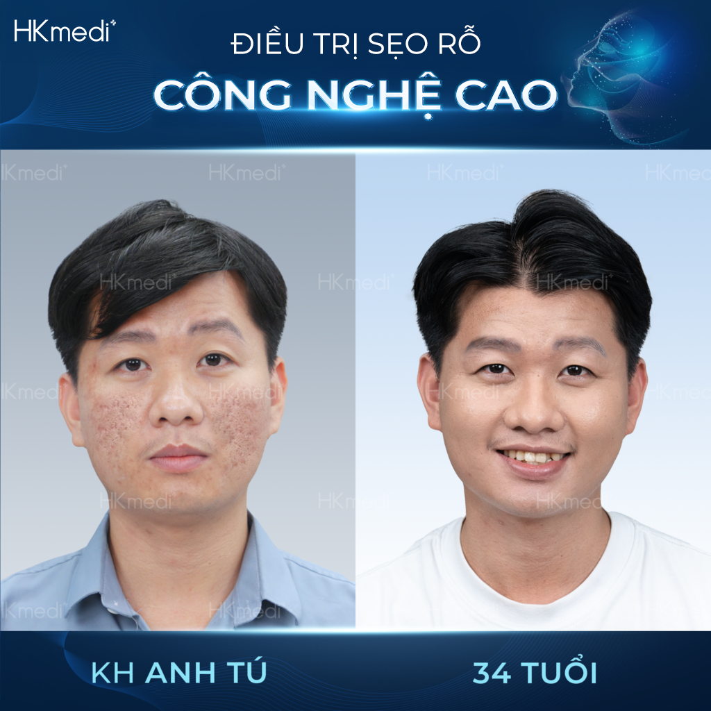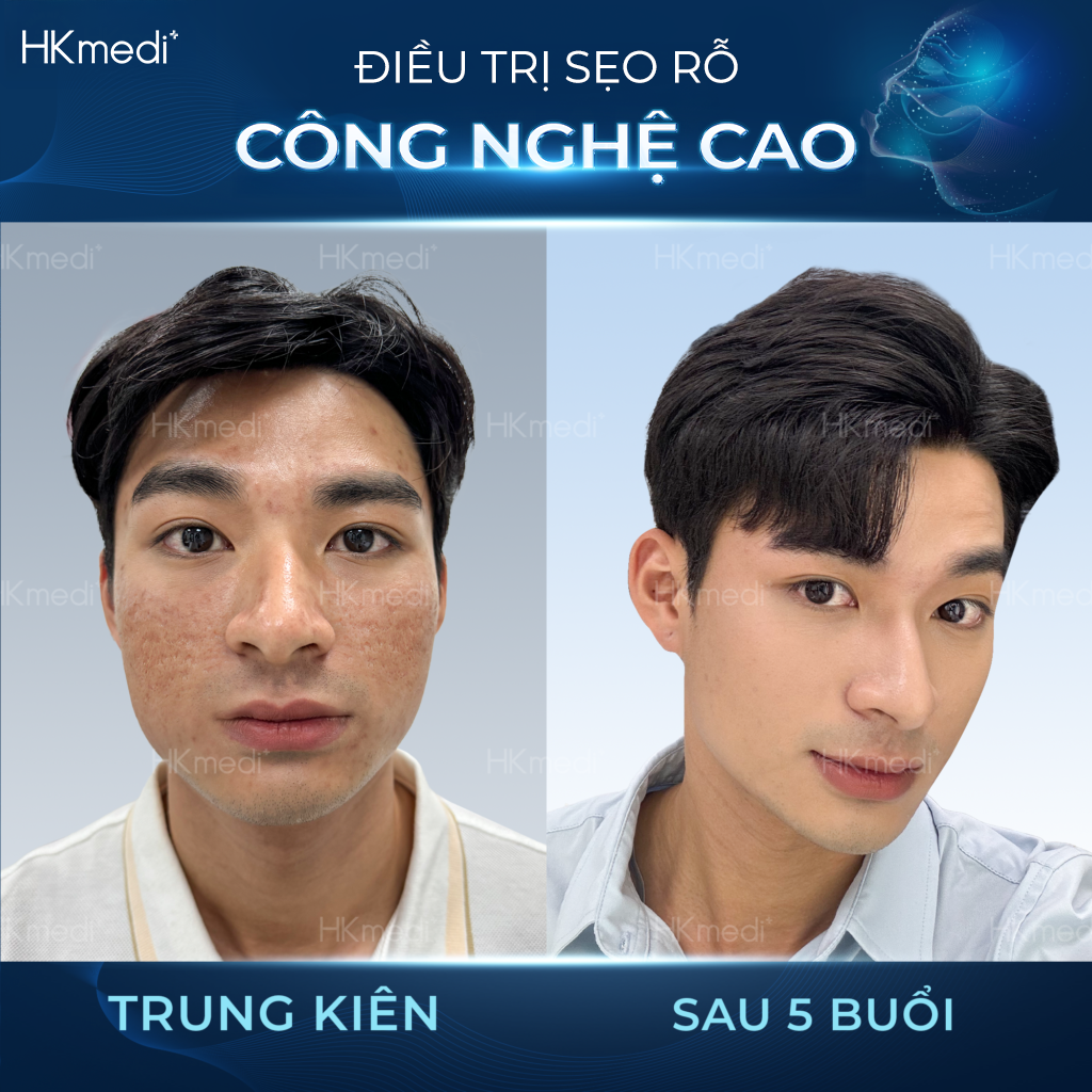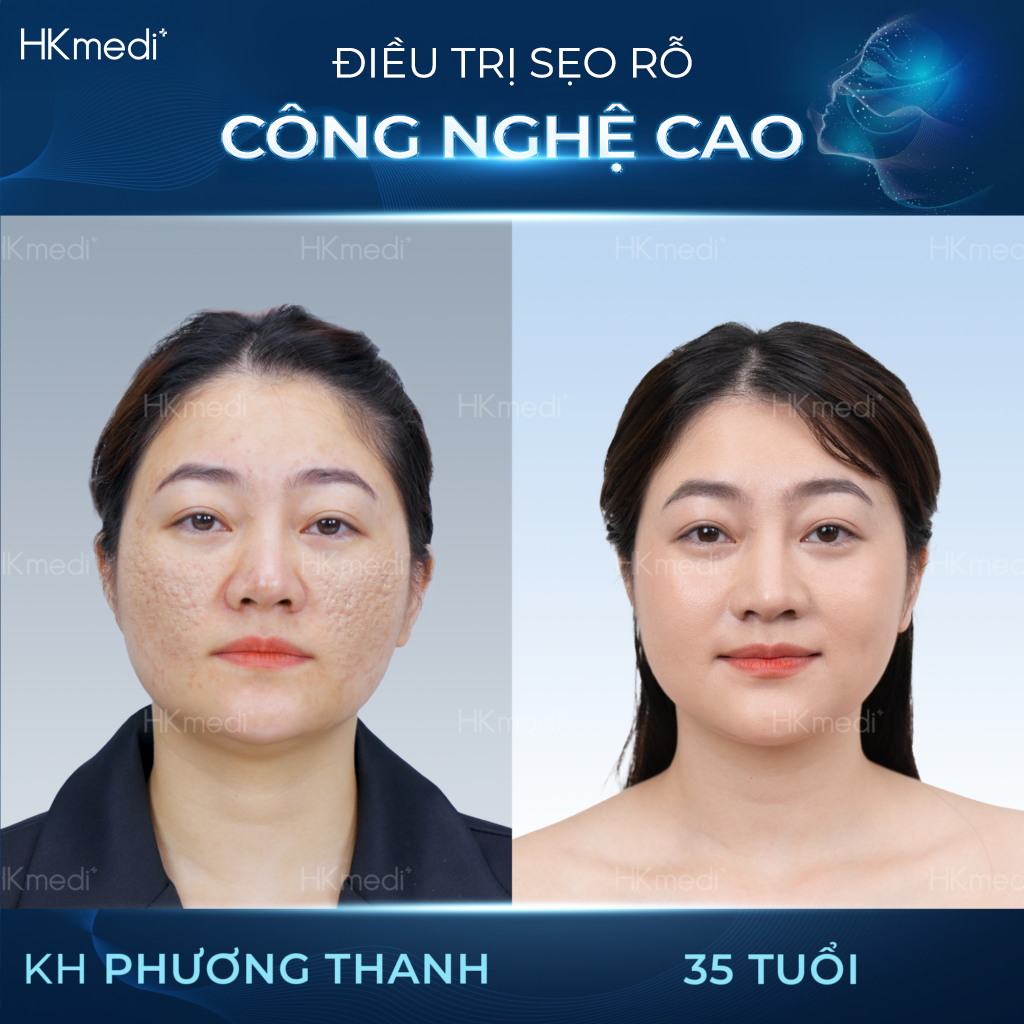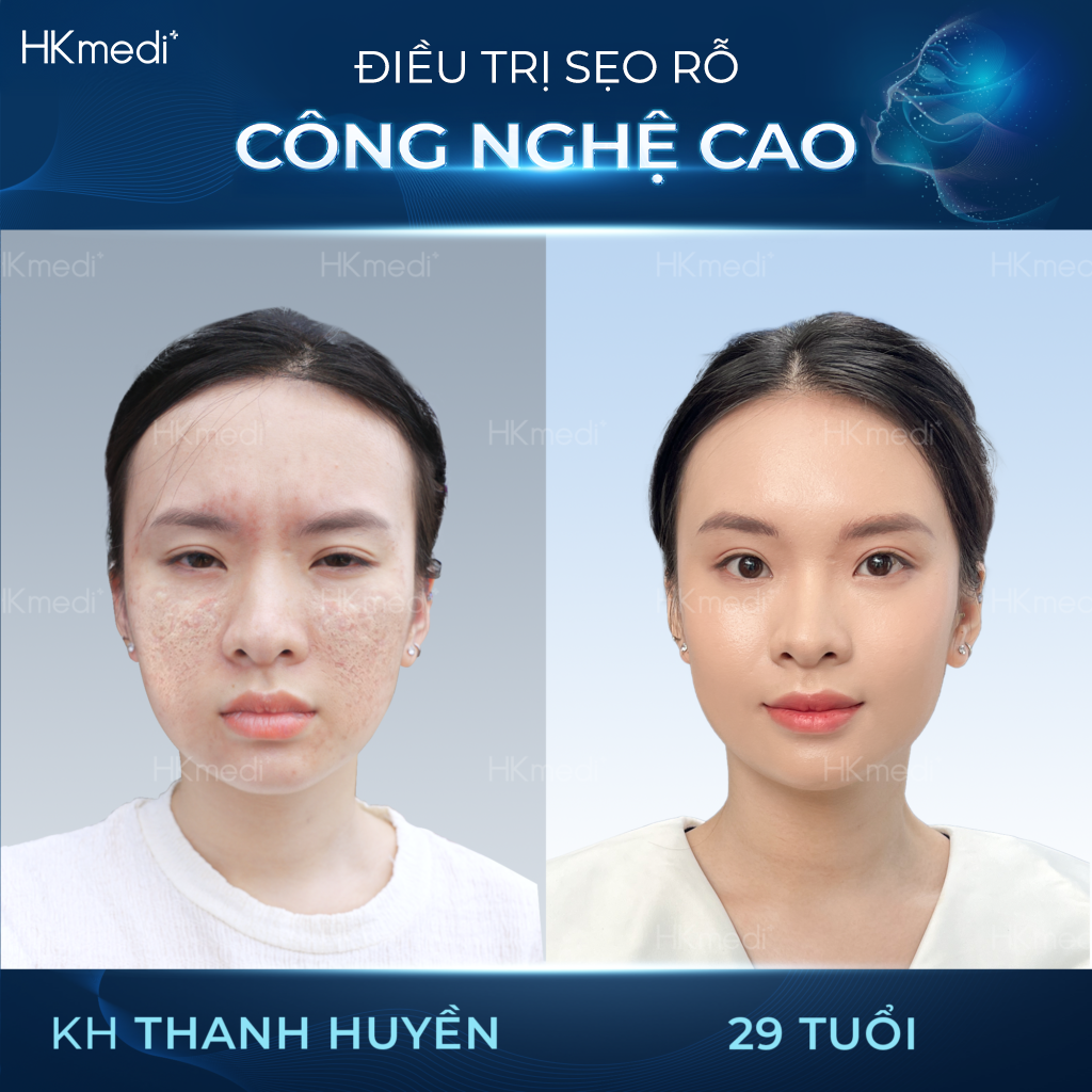 Công nghệ điều trị sẹo rỗ tại HKmedi là phương pháp điều trị sẹo thâm/sẹo rỗ kết hợp đa công nghệ và các hoạt chất tăng sinh nội tế bào. Phương pháp giúp giải phóng mô sẹo và giúp làn da bị tổn thương trở nên căng phẳng mịn màng.